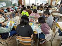 5年生は、図工の鑑賞を行っていました。たくさんある絵の中から1枚選んで、なぜそれを選んだのかなど、感想を述べ合う学習に取り組んでいました。