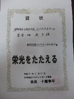 女子に負けじと男子諸君も頑張ってくれました。日向地区お別れ大会見事3位だそうです。元気いっぱい頑張りました。次への頑張り・活躍を期待しています。おめでとう!また報告ありがとうございました。