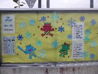 校門横の行事掲示板、2月バージョンに模様替えされました。2月1日には、きちんと代えられていました。忙しい毎日の先生方ですが、きちんと仕事をしてくれます。うれしく思います。
