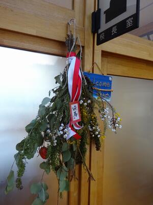 また、12月に地域の方から提供いただいた手作りのクリスマスリース(児童玄関・職員室・校長室)が、地域の方によってお正月バージョンに模様替えされました。始業式の話の中でもそのことを紹介したところ、たくさんの子ども達が気付いてくれていました。いつも、門川小学校のためにありがとうございます!