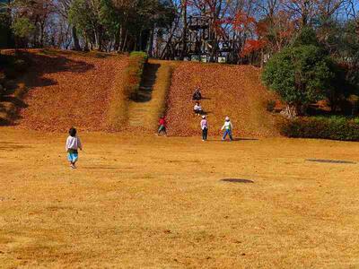 午後は、アスレチック遊びや鬼ごっこ、草滑りなど、豊かな自然の中で元気いっぱい走り回りながら遊びました。落ち葉が沢山落ちていて、葉っぱ合戦や葉っぱに埋もれる等、あちこちで楽しそうな顔がたくさん見られました。