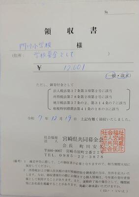 12月19日(金)に、運営・集会委員会の児童が、門川町社会福祉協議会の方々にしっかりと手渡しで預けました。高齢者や子どもたち、困っている方々のために使われる募金です。今回のように、みんなの力で門川町をもっともっとよくしていければと思います。