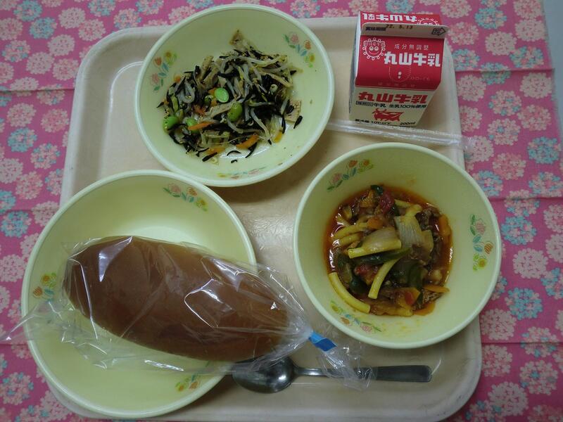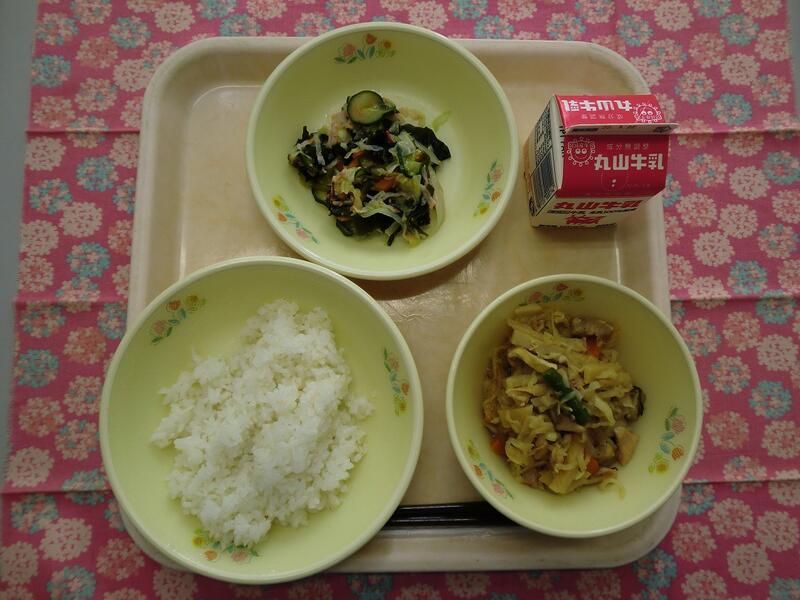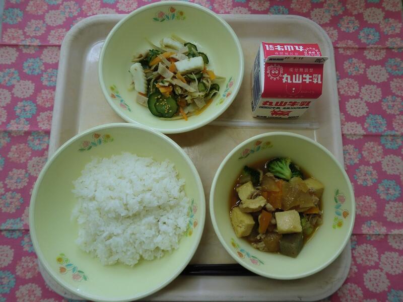 【献立一口メモ】現在、多くの人が生活習慣病でなくなっています。生活習慣病を予防するには、食事・運動・睡眠が大切です。給食は、健康によい食事の見本であり、何をどれだけ食べればよいかを知るためのものです。クラスで均等につぎ分けてはじめて一人分が分かります。それが皆さんに必要な量です。たんぱく質が足りないと、成長に影響しますし、ビタミンが足りないと体の調子が整いません。給食の献立には、一つ一つに意味があるのです。