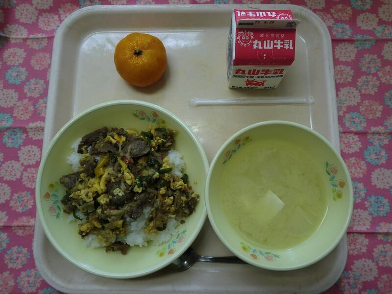 【献立】 おいしさギューっと丼・みそ汁・くだもの・牛乳