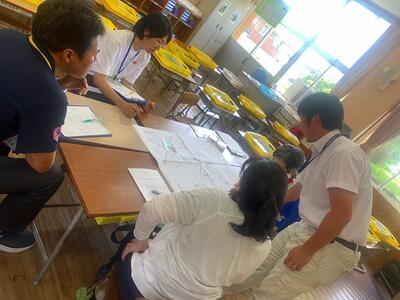 8月21日(水)は、各地区の地区会長、民生児童委員児童委員、PTA地域安全部員の皆様にお越しいただき、門川小学校職員と共に、防災マップの作成と避難経路の確認を行いました。