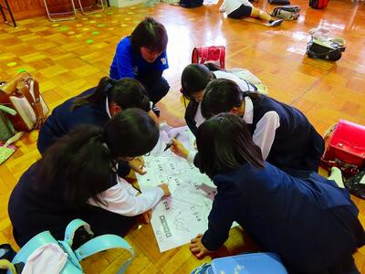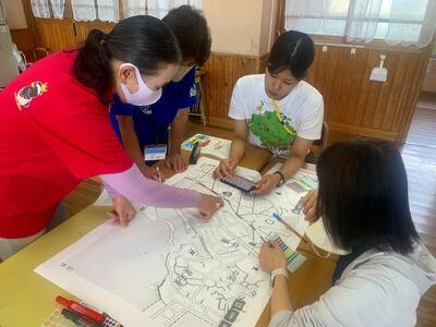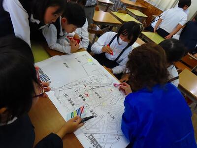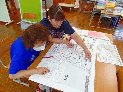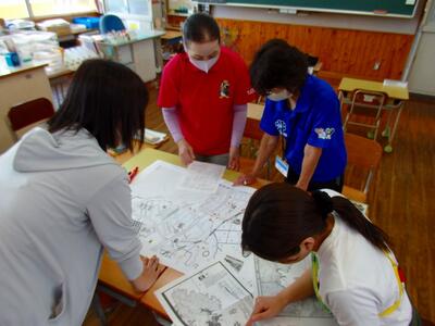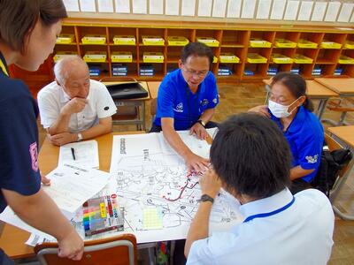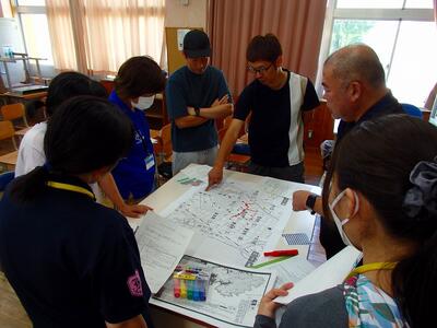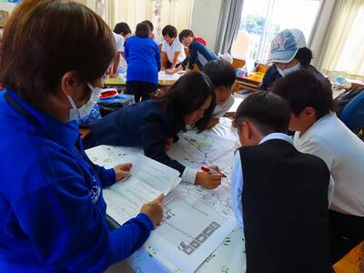 防災マップの作成時には、避難経路や避難場所の確認、地区の危険な場所や地震が起きたら通れなくなりそうな場所等を話し合うことができました。また、職員へ各地域の有益な情報を数多く教えていただき、新しい発見をすることもできました。