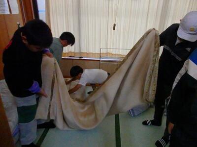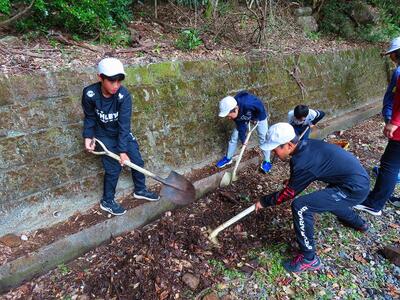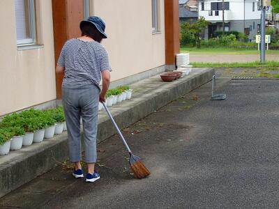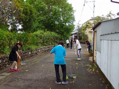 最後は、本校敷地周辺の樹木の葉や枝が、周りの道路に飛んでいっているはずなので、その道路の掃き掃除も行いました。また、本校近くに、突風によって瓦や外壁などに被害を遭われた住宅がありましたので、わずかな時間でしたが後片付け等にも参加させていただきました。