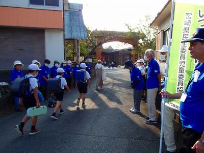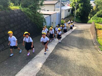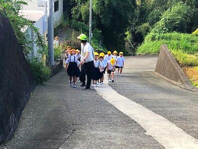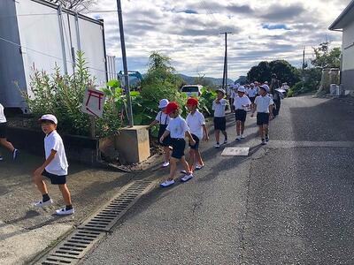 そして、この日の4~6年生は、集団下校をして、先ほど図上訓練で使用した地図を頭に思い浮かべ、避難場所の確認をしながら、地区会長様、民生委員児童委員様、門川小学校PTA地域安全部員様と一緒に下校しました。