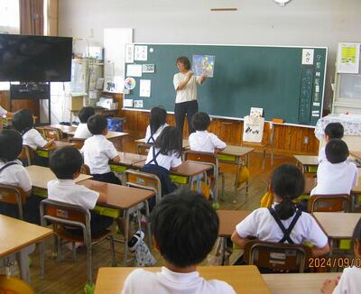 9月2日(月)の1校時目は、門川小学校PTA図書部員の皆様や、読み聞かせボランティア「ワンピース」の皆様による、1~3年生への読み聞かせが行われました。