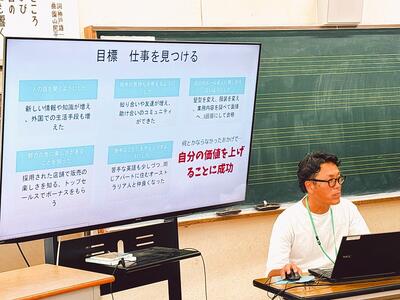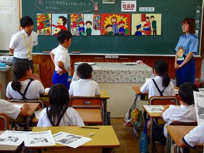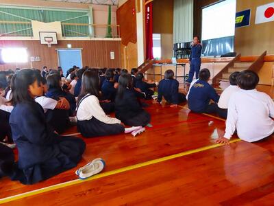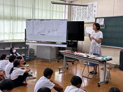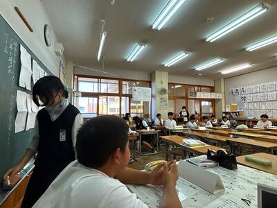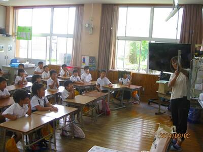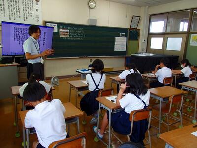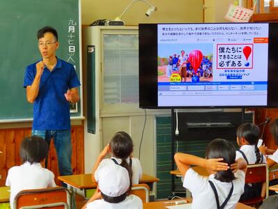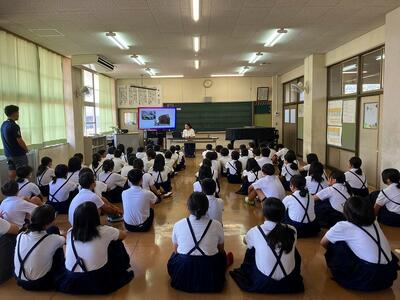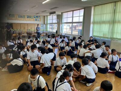 9月4日(水)は、門川タイム(総合的な学習の時間)に、地域おこし協力隊のお一人を講師として、「当たり前でないこと、大切にしたいこと」のお話をしていただきました。