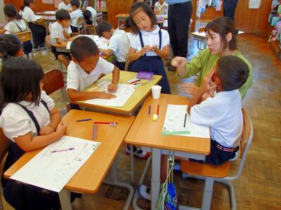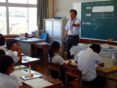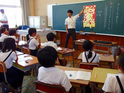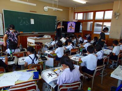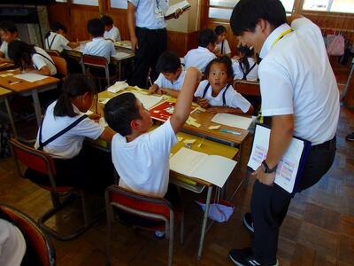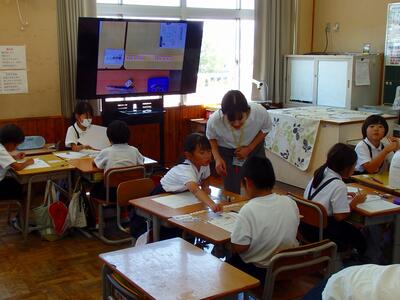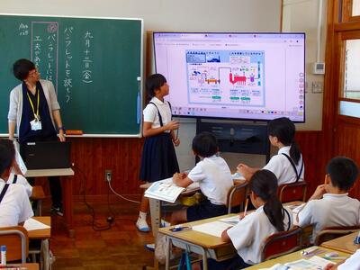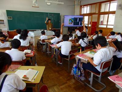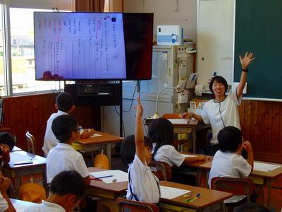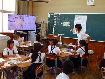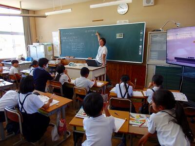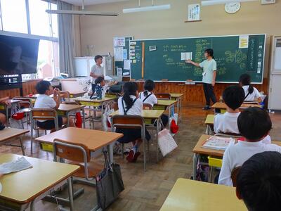 門川小学校では、「落ち着いた学校生活の中で、主体的に学習に取り組む児童の育成~基本的な学習習慣・生活習慣の定着を図る取組や『認める』指導の工夫を通して~」というテーマ(研究主題・副題)の下、授業力向上に力を入れています。そこで、5校時の参観授業については、学級担任だけが考えたものではなく、低学年・中学年・高学年の先生方それぞれが事前に何度も研修会を開いて熟議を重ね、そこで導き出された技術・発問・指示・ワークシート等を用いて研究授業を展開しました。