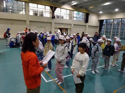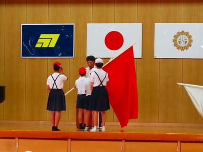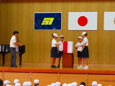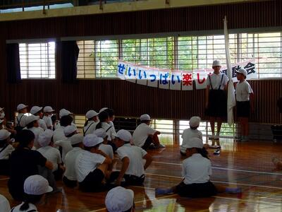 体育館に全校児童が集まり、体育委員会の司会で式が始まりました。
