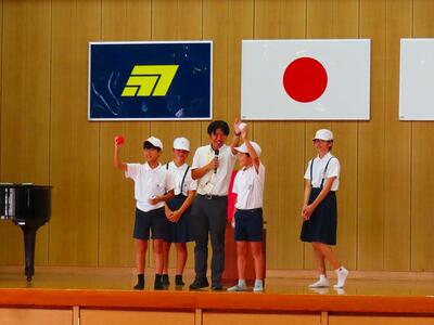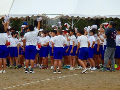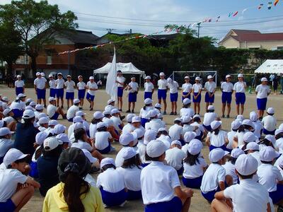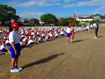 9月10日(火)の1校時は、10月20日(日)に行われる第123回運動会の結団式がありました。門川小学校では、赤団と白団に分かれて競い合います。
