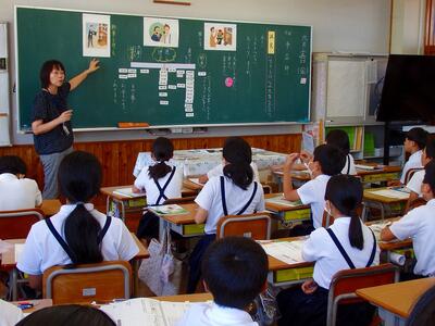高学年は、5年2組の国語科で、「『綾』の心情は、来たときと帰るときでどう変わったか。」というめあてで授業が展開し、「よく分からなくて不思議な思いから、戦争の恐ろしさに気付き、戦争のことを忘れないで、二度と同じような戦争がないようにしたいと思うように変わった。」とまとめることができました。