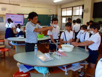 理科専科は、6年1組の児童に対して、「炭酸水には、何が溶けているのだろうか。」というめあを設定し、それに基づいて授業を展開しました。