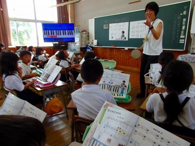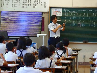 音楽専科は、3年2組の児童に対して、「『帰り道』を吹くときには、どんなことに気を付けるとよいか。」というめあてを設定し、それに基づいて授業を展開しました。