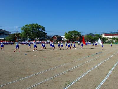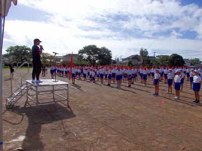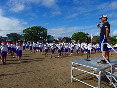 これから全体練習やリーダー練習も始まりますが、それぞれの団の良さが出るような運動会になればいいなと思います。また、運動会は、6年生のリーダーシップが試される場だと思いますので、6年1組と6年2組の児童全員がスローガンを達成できるように、バックアップすることを期待しています。