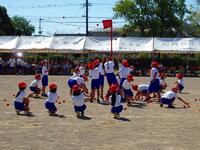 団色決定では、ステージの机上に箱(アルミホイルを巻いた赤と白のボールが1個ずつ入っている)を準備しているので、副団長がジャンケンをしてボールを選ぶ順番を決めました。そして、団長がその順番に従ってボールを選び、アルミホイルを剥がして、注目している全校児童にそのボールを見せました。これで、団色が決定しました。