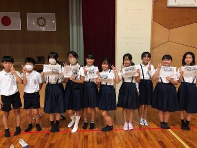 11月21日(木)に行われた今年度の活動は、「これからの門川に残したいもの」がテーマでした。「乙島」や「カンムリウミスズメ」、「だんじり祭り」の絵を描くグループが多かったです。