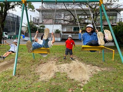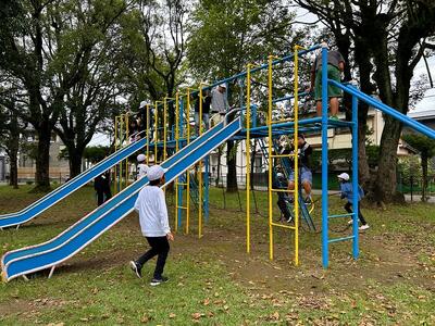 ルピナスパークは遊具も充実していて、お昼ご飯前に体をのびのび動かして遊びました。正しく順番待ちをしたり、様々なルールを作って競って遊んだりと、きまりを守って満足した遊びが、十分にできたようです。