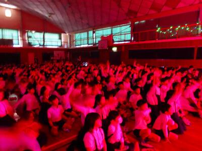 体育館に入ると、いつもとちがう雰囲気に子どもたちはドキドキ、ワクワク・・