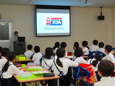 4年生の秋の遠足場所は、サンA工場と川南町運動公園でした。