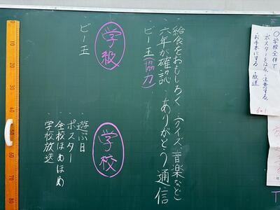 今回出された意見を、運営・集会委員会で再度協議し、できるだけたくさんの楽しい取組ができるようにしていきます。スムーズな進行だった6年生の議長や丁寧な文字を書いて見やすかった6年生の黒板書記、ありがとうございました。
