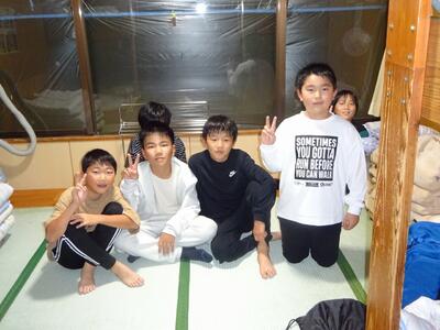 午後の活動も終わり、オリエンテーションの後、一番の楽しみかもしれないそれぞれの部屋へ入室。男子は2段ベットの部屋に興奮気味で、はしゃぎすぎて叱られることも多々ありました。他の利用団体がいなくてよかったです…