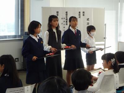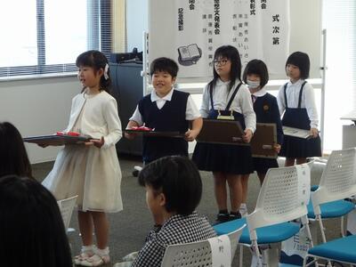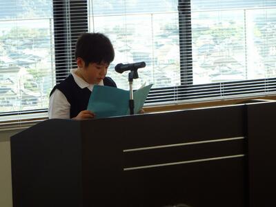 最優秀賞の合場健(2年)さんと、黒木恋華さん(5年)は、受賞者を代表して発表も頑張りました。2人とも、堂々と表情豊かに発表できました。