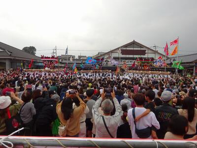 本日(11月17日)、午前中の「令和6年度第42回門川町読書感想文コンクール表彰式・発表会」に引き続き、午後からは門川漁港前で行われた門川だんじりのメインイベント「さし比べ」を見に行きました。