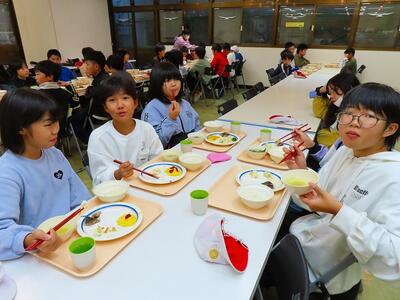 朝食の時間は、にぎやかでした。朝からおかわりする子。片付けの仕方も覚え、積極的に班の友達のお皿を集めて重ねたり、台拭きをしたりする姿が見られました。「協同」や「友愛」の言葉を考え、行動できていると感じました。