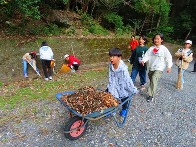 午後の活動「奉仕活動」では、外に出て、側溝の掃除を行いました。すばらしい姿がたくさん見られました。シャベルで土や葉をかき出す児童。一生懸命にそれを運ぶ児童。木の枝を拾う児童。それぞれ、自分のことより、目の前の場所をきれいにすることを考えていました。