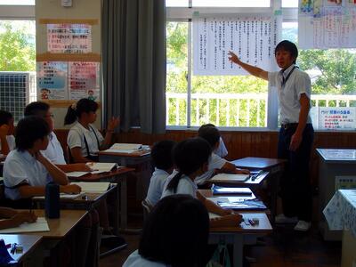 9月4日(水)は、門川タイム(総合的な学習の時間)に、地域おこし協力隊のお一人を講師として、「当たり前でないこと、大切にしたいこと」のお話をしていただきました。
