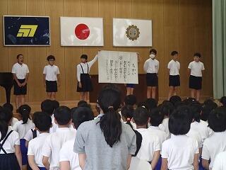 毎年行っているJRC登録式が今年度も行われました。JRC活動で大切なことについてお話を聞いたり、1年生にJRCバッチの授与式があったり、委員会の児童が中心となって誓いのことばを言ったりしました。「気づき、考え、実行する」という合い言葉を守って、みんなのためになる活動をこれからもどんどん行ってほしいと思います。