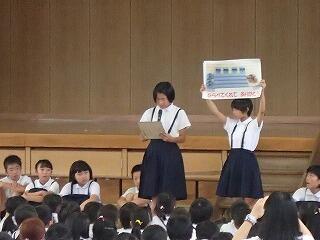 台風接近のため延期になっていた6年生の発表集会が7月9日に行われました。詩の群読や合奏などを何度も練習してきましたが、その成果をしっかり出し切った発表ができました。さすが最高学年です。保護者の方々も参観ありがとうございました。
