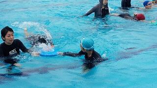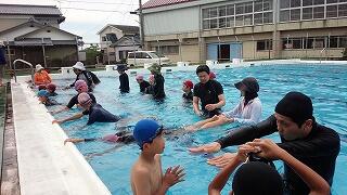 7月22日、23日の2日間5・6年生を対象に水泳教室を実施しました。39名の児童が2日間熱心に泳ぎ方の練習をしました。あまり泳げなかった子どもたちが次々に自己最高記録を更新し、中には50m泳いだ子もいました。2日間大変よく頑張りました。