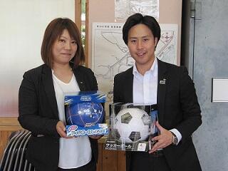10月10日(木)、明治安田生命日向中央営業所長の八木康介様と職員の方が来校され、本校にサッカーボールとドッジボールを各2個、寄贈してくださいました。これは明治安田生命の地域貢献活動の一環だそうです。とてもカラフルなボールで子どもたちも喜びそうです。ありがとうございました。