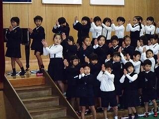 12月3日の朝の時間に発表集会がありました。今回は1年生の発表でしたが、とても立派な態度で、元気よく上手に発表することができました。教えていただいた手話を使って「切手のないおくりもの」を歌ったり、鍵盤ハーモニカできらきら星を合奏したりしました。大きな声で群読したり、リズムにのって月の歌を歌うことも頑張っていました。朝早くから多くの保護者の方々にも来ていただき、ありがとうございました。子どもたちもとても満足そうでした。