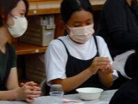 実際の製作では、親子や学級生同士で会話を楽しみながら、講師がおっしゃられたとおりに、丁寧に作りました。ときには、材料がうまく混ざらなかったり、固める際の力加減が難しかったりして、悪戦苦闘する姿もありましたが、川井先生が上手にサポートをしてくださり、あっという間の1時間でした!