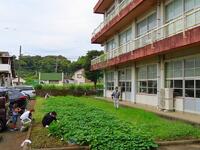 8月24日(土)は、PTA環境整備部員、PTA運営委員、教職員で、校舎周辺・運動場の草刈りと草抜きを行い、その後、その刈ったり抜いたりした草をビニール袋に入れて塵芥車(パッカー車)に積み込みました。