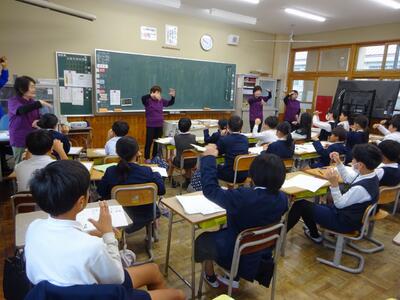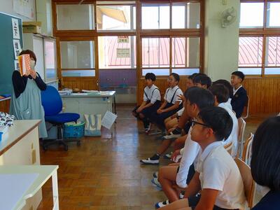 10月27日(月)の1校時は、高学年(4~6年生)への読み聞かせがありました。ボランティアの方がいろいろな内容の本を意欲的に厳選してくださっており、持って来られた絵本バックがパンパンに膨らんでいました。時間の関係上、その全ての本を読んでいただくことができなかったのが心残りですが、3学期への楽しみが増えました。
