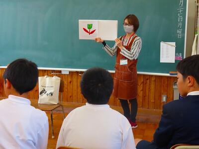 絵本の読み聞かせの途中や前後に、クイズをしてくださったり、実物のフウセンカズラの実を持ってきて見せてくださったりして、児童の目がとても輝いていました。絵本の内容に関心が一層と高まったと思います。