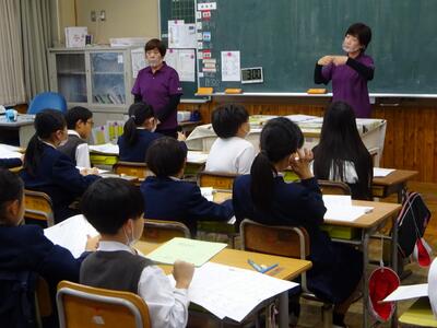 今日は、門川町手話サークルの方4名に講師として来校していただき、「福祉体験学習」を行いました。