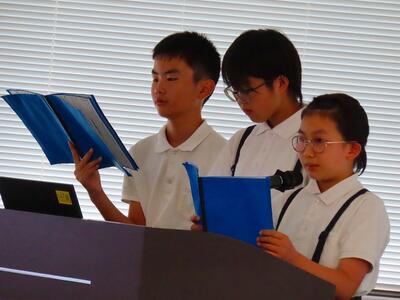 それぞれの学校の取組が報告される中、本校の取組を、6年生の3名が代表して発表しました。知らない小学生や中学生、高校生、大人がたくさんいる中での発表や意見交換は、大変緊張したと思いますが、堂々と自分たちの取組や意見を発表することができました。他校のいじめ未然防止策から多くの学びもあったと思います。そして、このような場に参加したことは、とてもよい経験になったことと思います。大変よく頑張りました。