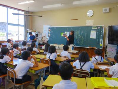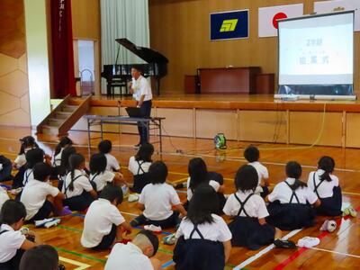 まず始めに、命について考える機会が多かった夏休みだったという話をされ、「命はとてもはかない(もろくてこわれやすい)」ということを児童に伝えました。