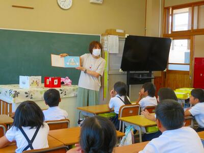 9月1日(月)は、1年生から3年生までの絵本の読み聞かせでした。