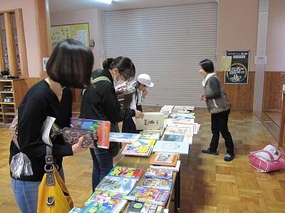 11月20日(火)は2・4・6年、27日(火)は1・3・5年の参観日がありました。懇談会の後、児童玄関のところでPTA図書部による古本市・制服バザーが行われ、6年生の各家庭からのご厚意で集まったたくさんの本が1冊100円で販売されました。益金は子どもたちの図書購入に充てられるということで、たくさんの方が購入してくださいました。ありがとうございました。