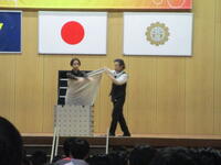 まず、2年生の子どもたちの拍手で4名の方々をお迎えしました。そして、歌のプレゼントをしました。「手をつなごう」を元気よく歌いました。4名の方々は、とても喜んでおられました。