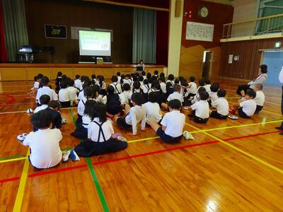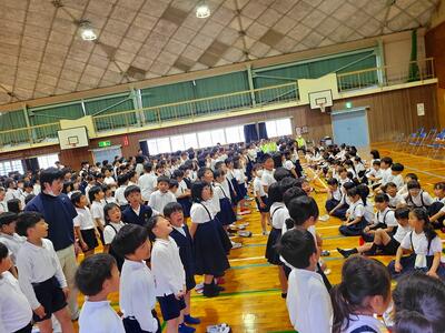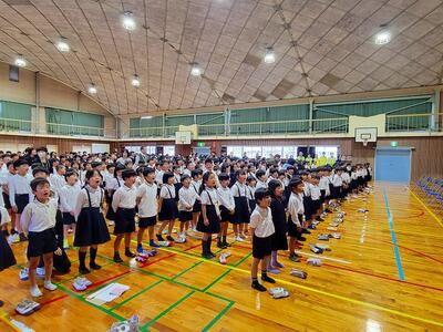 最後は、全校みんなで校歌の1番を歌いました。1年生は、覚えたてでしたが、きちんと歌うことができ、児童のまとまりを感じました。
