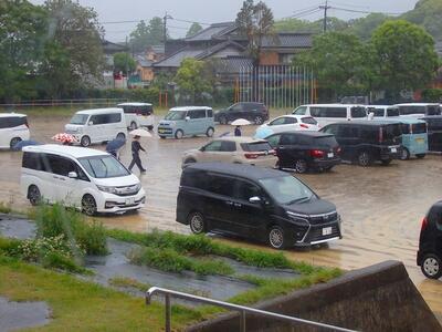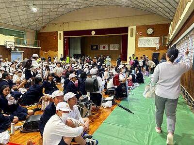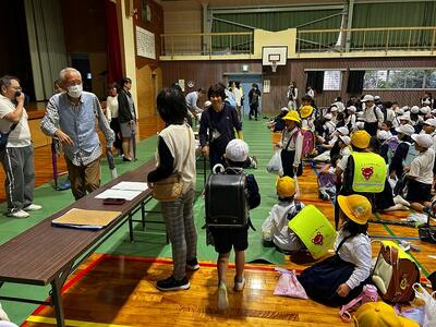 児童は体育館で学年ごとに待機し、ご家族のお迎えを待ちました。ご家族の方々には時間どおりに来校していただいたおかげで、予定どおり1時間ほどで引き渡しを終えることができました。
